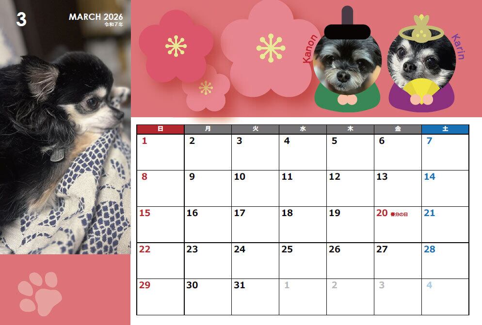 ワンニャンのオリジナル卓上カレンダー はがきサイズ B:追加